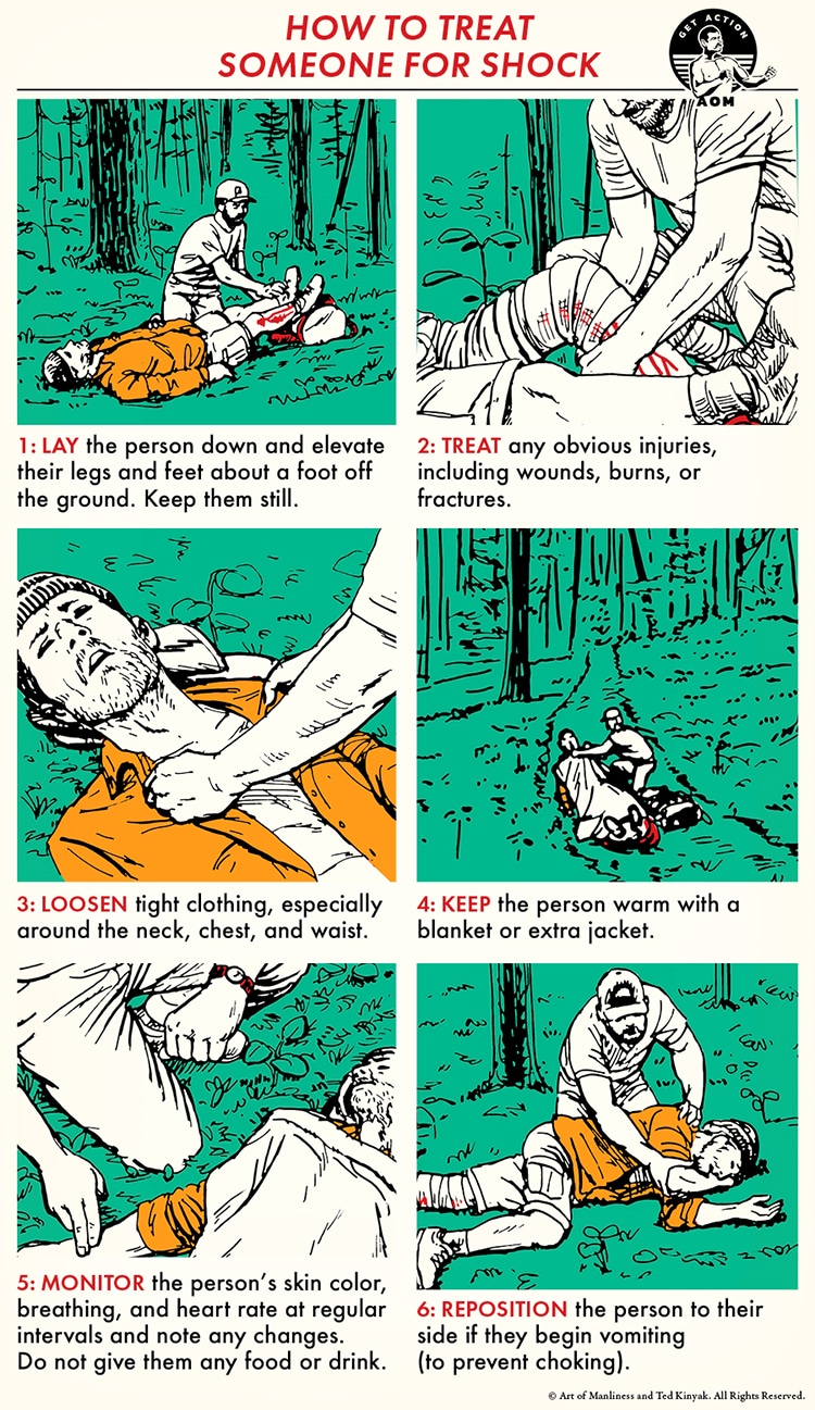 Shock occurs when the body’s internal organs aren’t getting enough blood flow. A person can go into shock for a variety of reasons including severe bleeding, vomiting, heart attack, spinal injury, or even certain drug overdoses. The symptoms of shock are fairly broad, but usually include weakness, clammy skin, fast heart rate, quick breathing, sweating, and thirst. If untreated, a person in shock may start to feel confused, lose consciousness, or go into cardiac arrest. That’s why it’s important to treat anyone who may be in shock as quickly as possible.