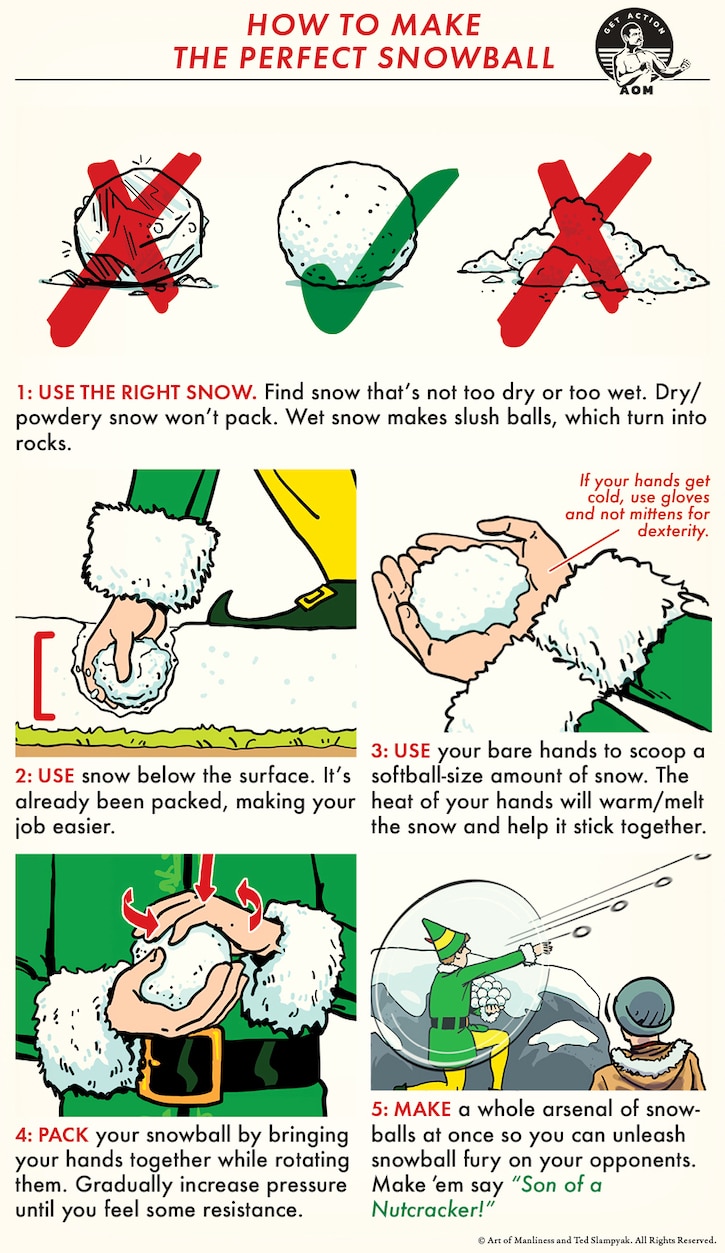 With winter weather setting in, snow days filled with snowball fights will be making an appearance in many places in the Northern Hemisphere. For a refresher on how to build the perfect snowball, we’ve called in snowball-building expert Buddy the Elf.