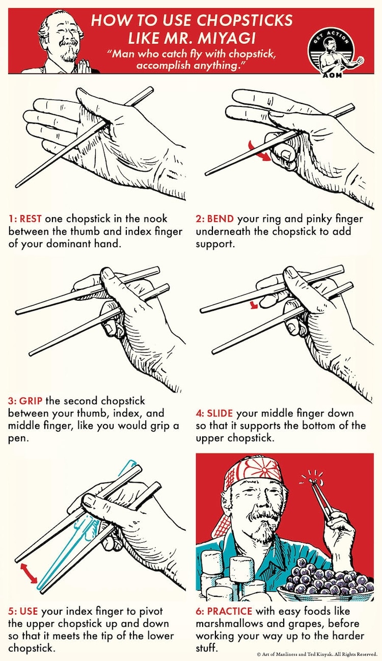The Karate Kid taught kids of the 80s a lot about bravery, integrity, and — of course — rad chopsticks moves. The scenes where Mr. Miyagi and Daniel-san try to catch houseflies between the tips of their chopsticks are among the most exciting moments in utensil movie history. To get to that level of chopstick zen mastery, you’ll need a lot of practice on easier targets, like sweet and sour chicken. But, with time, you may just find yourself tossing out your fly swatter. Be patient; remember, it even took Mr. Miyagi himself until Karate Kid II to finally snag a fly himself.