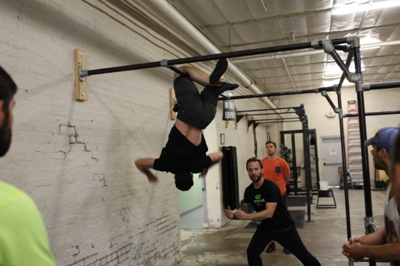 The second day started off at 9am, and I was even sorer than I was the night before. The morning was spent reviewing the movement skills we learned on Saturday. This time, though, the coaches mixed things up and added some fun by incorporating variations and games. For example, with balancing, rather than just walking forwards and backwards on 2X4s, we had to traverse them while holding sand bags and medicine balls, and stepping over barriers.
