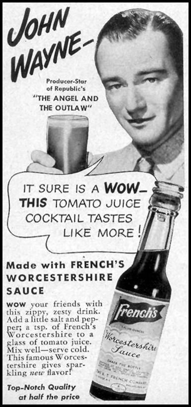 Worcestershire sauce is a fermented liquid made up of (among other things) anchovies, vinegar, onions, and garlic. In other words, to a kid, it’s an exotic, slightly intimidating elixir, and of course, a chest hair grower. This is a form of supposed chest hair Rogaine I actually enjoyed. Worcestershire’s got a nice, savory, umami taste which makes it great for adding to meats. Trying to amplify the sauce’s chest hair-growing abilities, my brother and I experimented with making a concoction of lemon juice, tomato juice, and pepper, which tasted gross to us, but is just the the kind of cocktail John Wayne enjoyed.