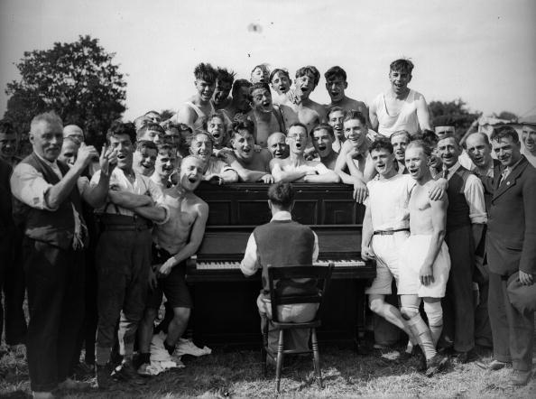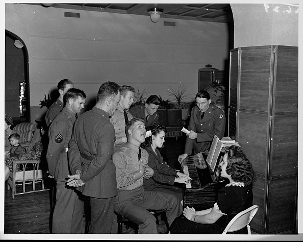 While the sing-a-long has something of a “sissy” connotation in the modern age, its cohesion-building effects have in fact long given this activity a primary place within all-male groups, which have historically been tasked with pursuits — like hunting, sports, and war — that require keen camaraderie. Hence the singing that takes place among teams and spectators before, after, and during athletic events and the library of drinking songs sung in once male-only pubs. Particularly in the military, sailors and soldiers (including ancient Spartan warriors), did a lot of communal singing both on the frontlines and when taking some R&R, as the gallery below shows.